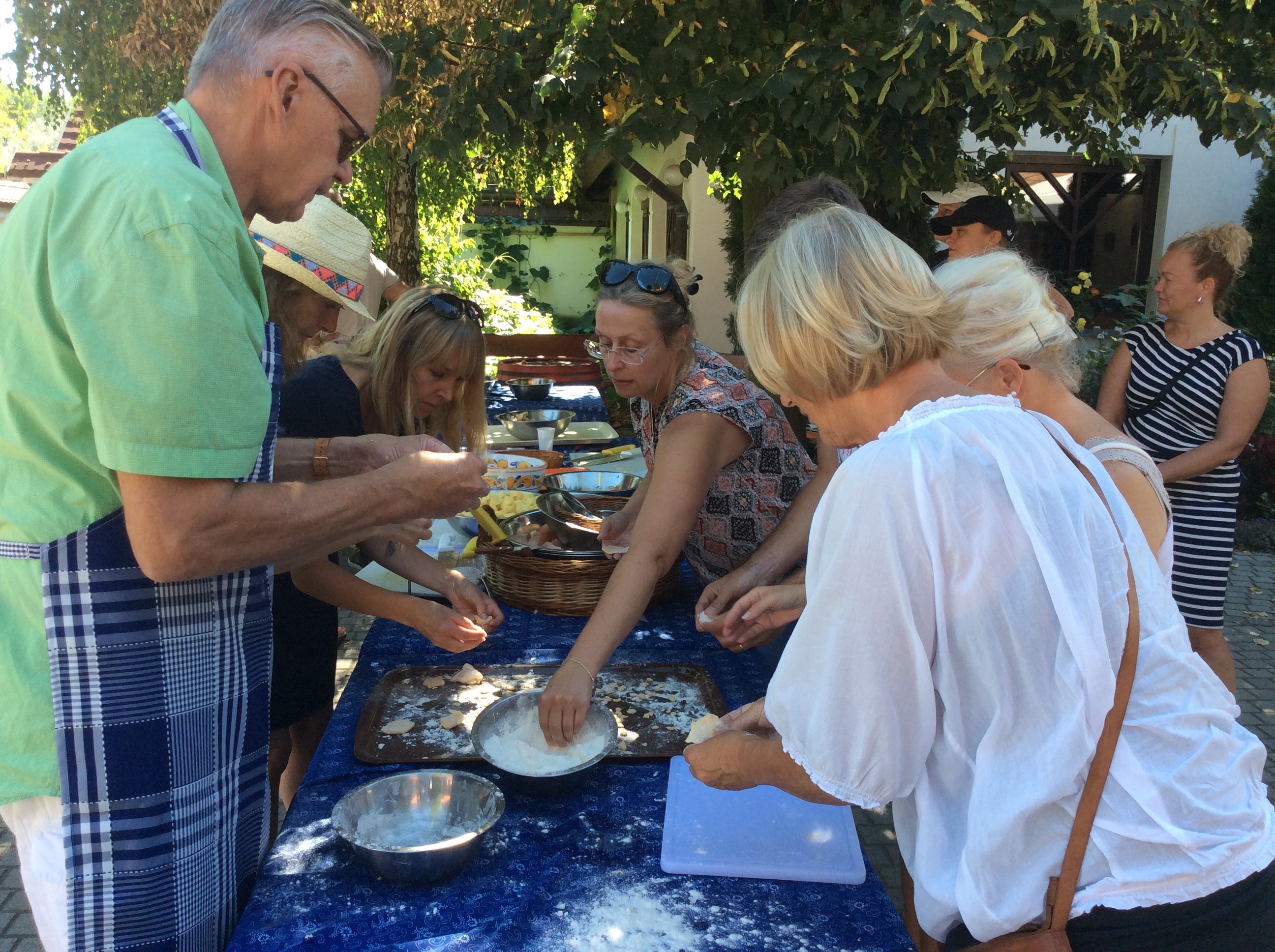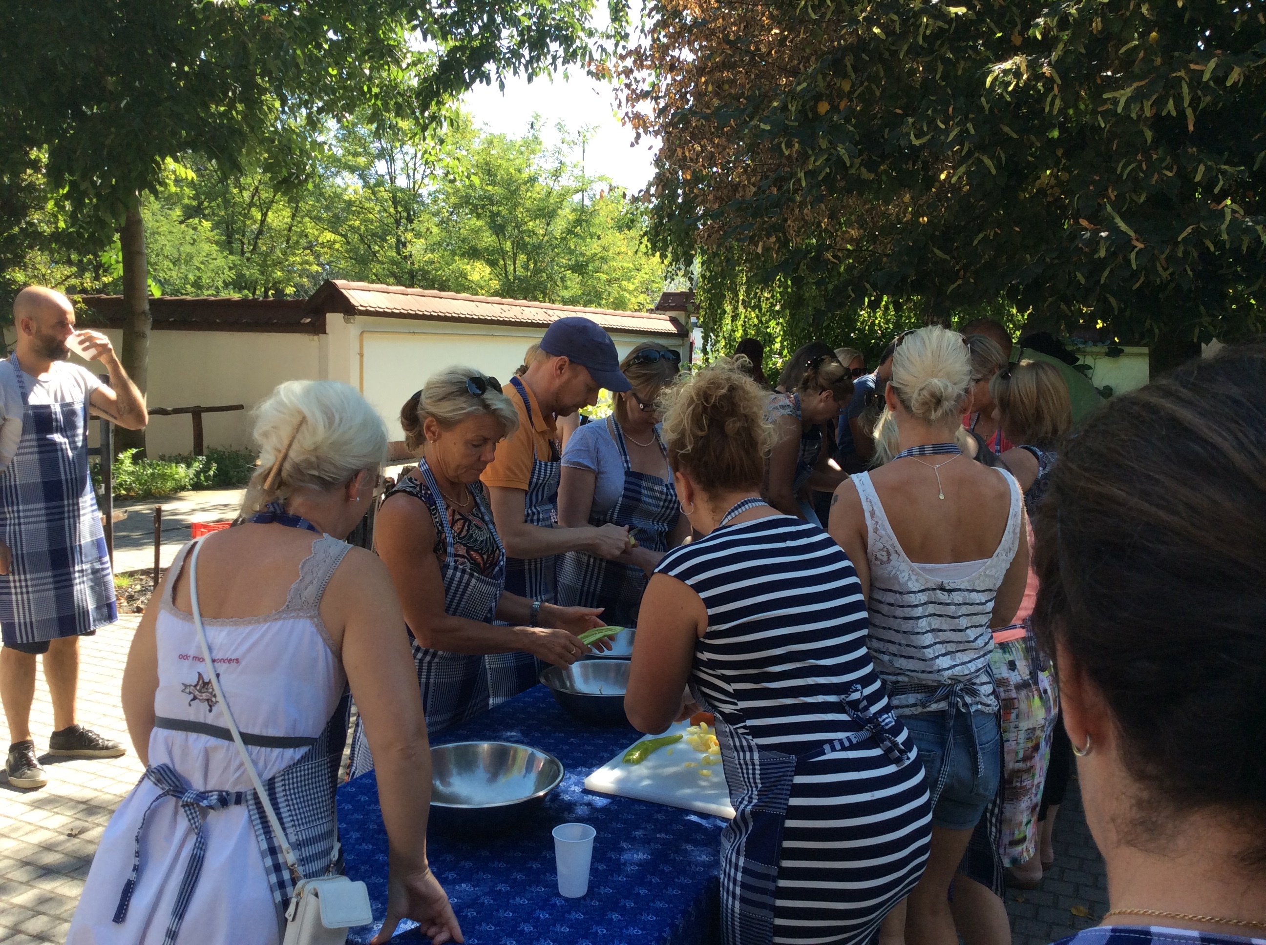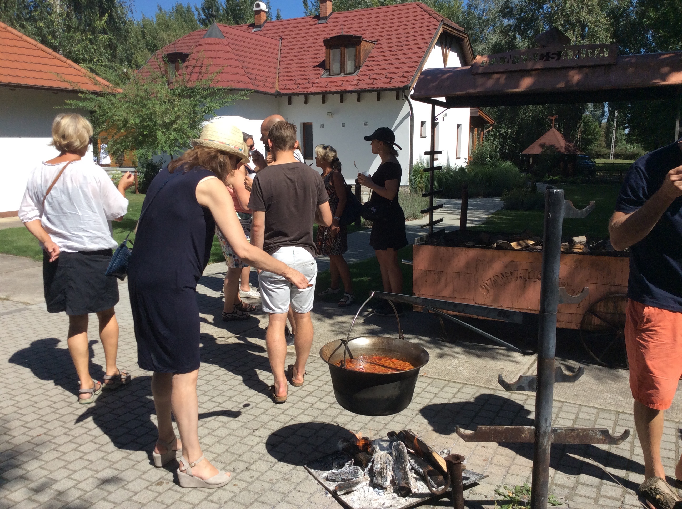 Ni som kommer med en grupp….. vill ni ha någon trevlig gemensam upplevelse ? En matlagningskurs kan skapa en gemytlig stämning, en matlagningskurs kan också ge en inblick i en annan kultur. Vi ser till att knivarna är nyslipade och förklädena är nystrukna. Det enda som ni ska ha med er är gott humör. Ni kan lära er att laga den traditionella ungerska gulaschsoppan, eller gulyas, som det står på de ungerska matsedlarna. En duktig kock handleder och resultatet är en rykande varm soppa över öppen eld. Efter kursen får ni förstås avnjuta den tillagade middagen tillsammans med ett gott vin.